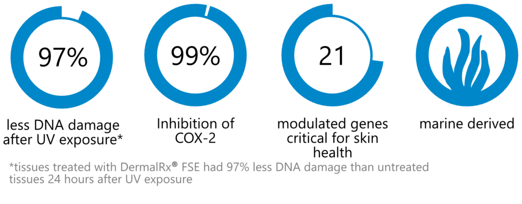 Our skin, especially on exposed areas of the face and hands, experiences frequent exposure to sunlight and other environmental threats that damage DNA. These high rates of DNA damage compromise skin cell function and threaten the healthy, youthful appearance of the skin. DermalRx® FSE HH, a ferment of marine-derived Sargassum vulgare, is rich in bioactive phlorotannins that rejuvenate and protect through the stimulation of the skin’s natural nucleotide excision repair (NER) process for DNA repair. At the same time, DermalRx® FSE HH delivers strong anti-pollution activity by inhibiting oxidation and inflammation while modulating the expression of 21 genes critical for skin health at the molecular level. With potent biological activity, DermalRx® FSE HH is an ideal candidate for any protection or repair product.